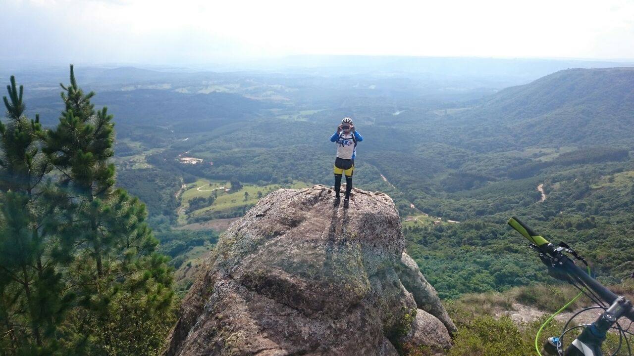 | Ciclista no topo do paredão. Foto: Divulgação |
