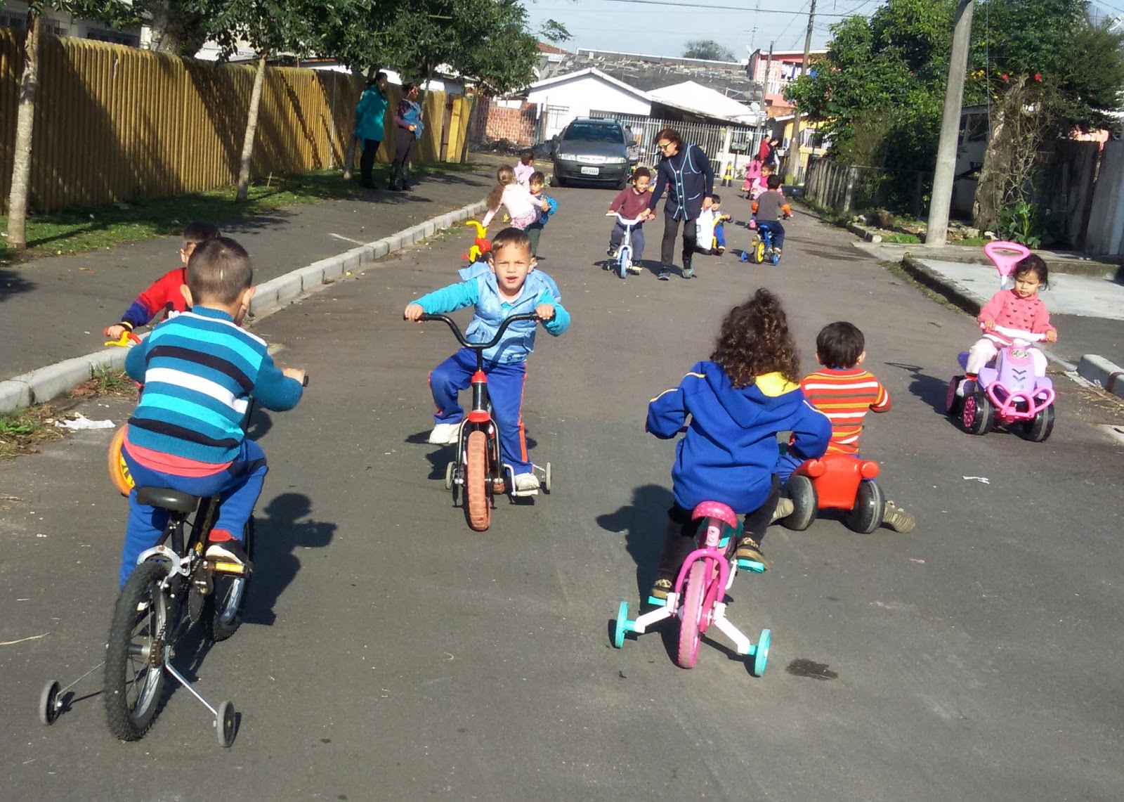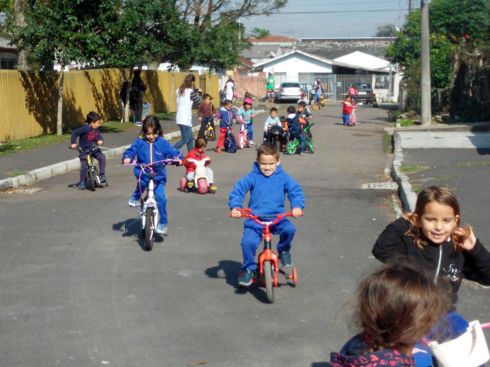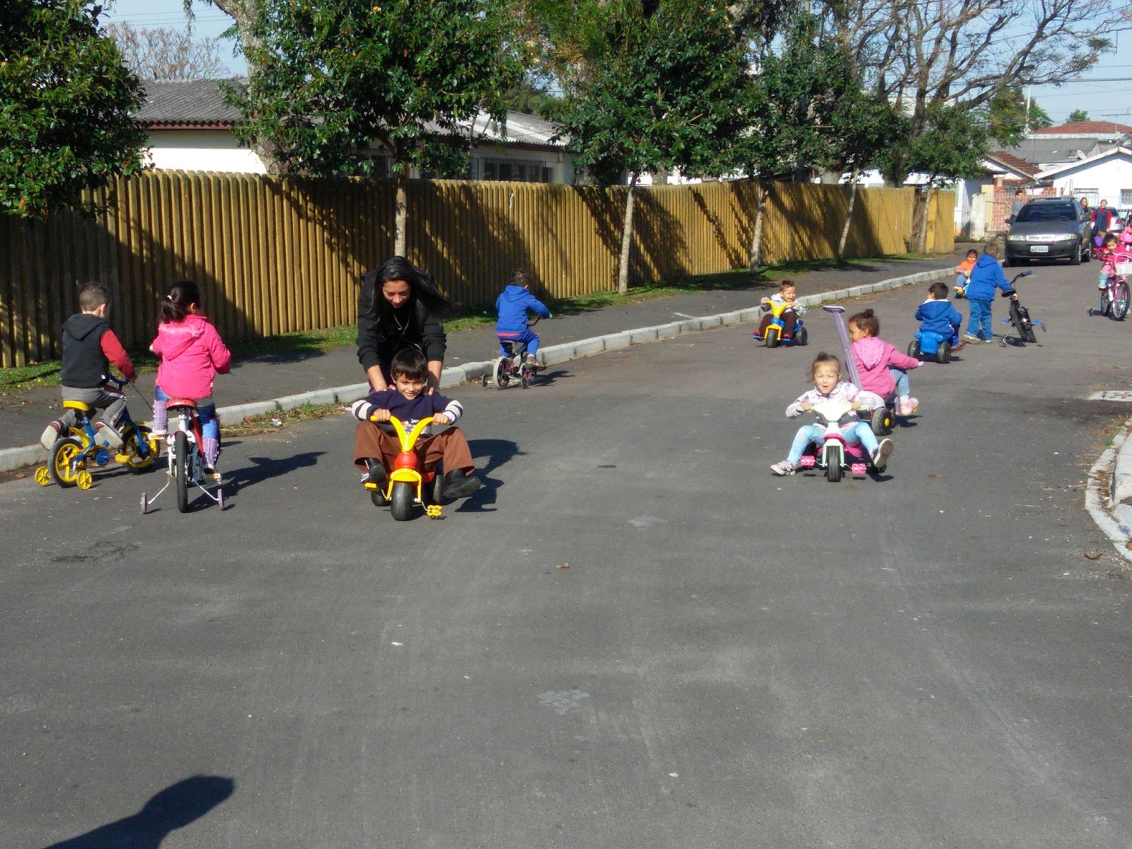 Na manhã desta terça-feira (23/5), as crianças do Centro Municipal de Educação Infantil Moradias Gramados, no Pinheirinho, andaram de bicicleta e motoquinha. “Elas estavam ansiosas por este dia”, diz a diretora da unidade, Maria Iraíde de Almeida. Parte da rua ao lado da unidade foi isolada para a brincadeira, para que as crianças pudessem se divertir de forma segura.