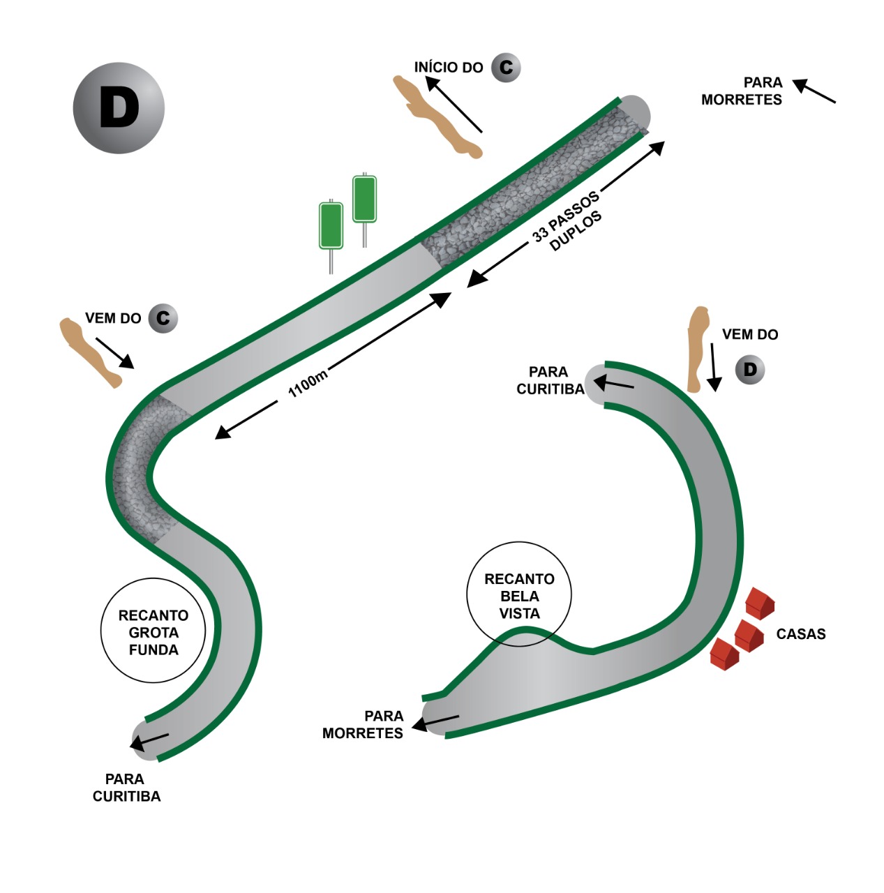 Esse outro traçado lateral liga Paranaguá a São José dos Pinhais, e deu origem a BR 277. A trilha original começava na localidade de Porto dos Padres, e acompanha as margens dos rios Fortuna, Pinto e Arraial até a região metropolitana da capital. E, como o vocábulo indígena diz, o caminho leva até um pequeno povoado. Povoado dedicado ao garimpo, que se formou logo depois da colonização, às margens do rio de mesmo nome.