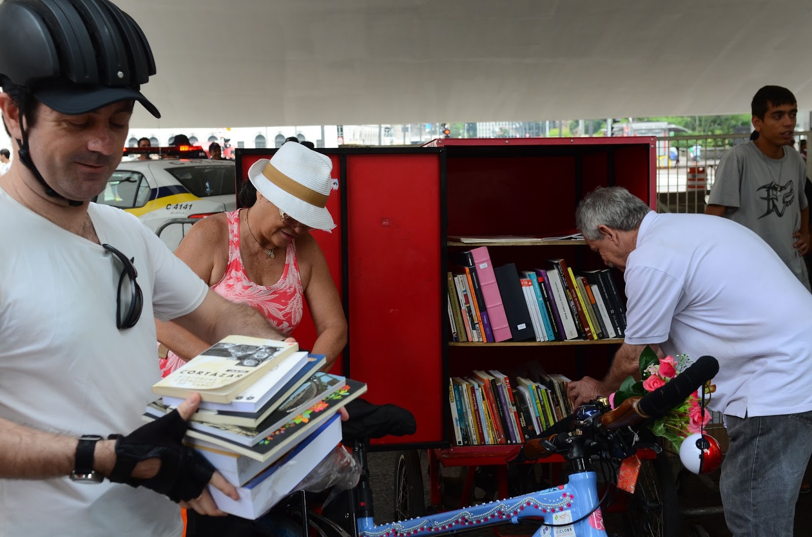 Ciclistas fizeram sábado (7 de janeiro) uma doação de livros para o Bicicloteca, que distribui livros para pessoas em situação de rua na capital paulista. Após a arrecadação na Praça do Ciclista, na Avenida Paulista, os ativistas pedalaram até a Praça do Patriarca, próximo à prefeitura, onde entregaram os livros ao projeto. Foram arrecadados cerca de 100 títulos.