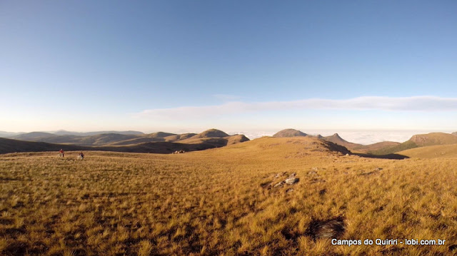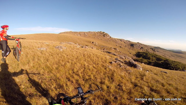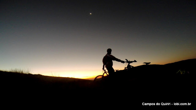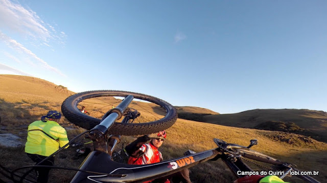 Depois de muito rodar e estudando o azimute nossa chance maior naquele momento era atravessar pelo meio do completo de montanhas que englobam os campos do Quiriri. O Wellyson procurava uma estrada mas eu insistia (e não por acaso) na travessia pelas montanhas e já rezava para que todos aceitassem a ideia e foi aí que iniciou um dos mais espetaculares passeios de bike já vivenciados, não só na minha confissão mas na da maioria absoluta ali presente. E olha que estamos falando de ciclistas experientes e de bagagem considerável. Certo que foram sete quilômetros (na grande parte dele caminhando), mas foram justamente para se parar obrigatoriamente e curtir tudo o que de belo e “amazing crazys” tem o Quiriri a oferecer. Cruzamos matas ciliares, atravessamos córregos, pedalamos sobre o capão, deslumbramos imagens espetaculares a mais de 1400 metros do nível do mar, pedalamos sobre as nuvens e almoçamos as seis da tarde assistindo um por do sol que dificilmente sairá das nossas mentes algum dia.