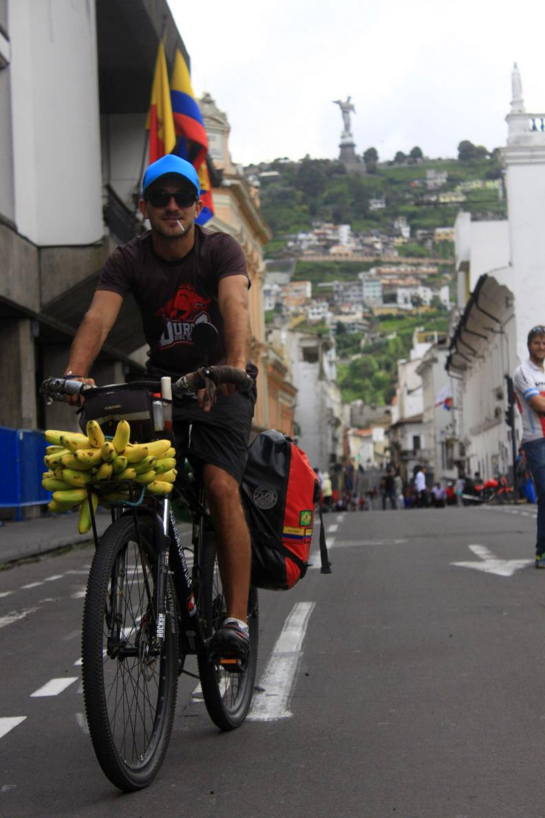 Todas as famílias que me acolheram são especiais e fazem parte da minha história mas o lugar especial é a capital Equatoriana, nunca gostei de cidades grandes e sempre falava que não ia ir para Quito mas eis que o destino me levou para lá, digo isso porque não consegui sacar dinheiro em uma pequena cidade no nada, um lugar incrível de muita natureza e paz, devido a esse problema com meu cartão de crédito me obriguei ir para a capital, cheguei lá com apenas alguns dólares no bolso, sentei em uma praça para comer uma comida típica equatoriana, encebollado, logo depois veio um homem que estava fazendo exercícios falar comigo e em meio a conversa falei sobre meu problemas com o cartão e que estava na procura de um lugar para ficar, o homem me passou o endereço de um amigo seu que recebia ciclistas, fui até ao endereço e fui recebido pelo tal homem, seu nome até então era Carlos Tacuri, mas logo comecei a chamar de Papa Carlitos, digo isso por que ali fiz uma família, Papa Carlitos, e meus irmãos Cicloturistas, Camilo, Octávio e Léo, fiquei um mês vivendo e ajudando em uma bicicletaria. Onde eu não queria ir acabou sendo o lugar mais difícil de me despedir, pessoas boas e de coração puro que me acolheram de braços abertos.