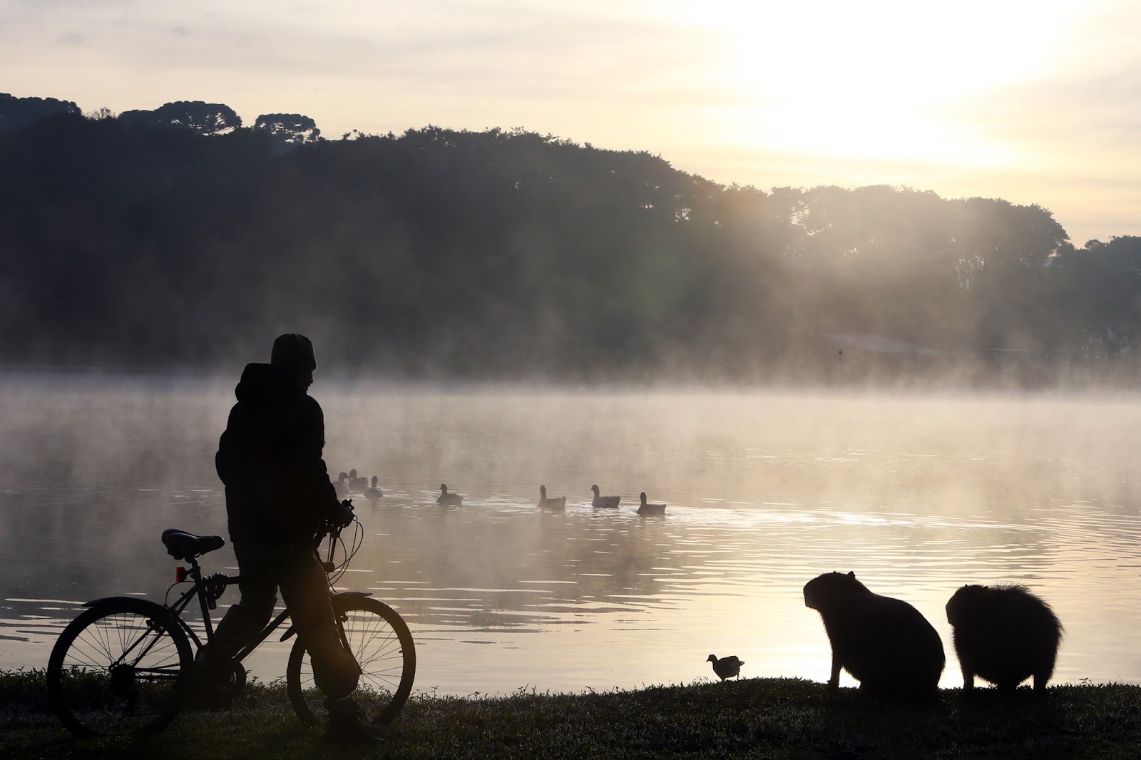 | O inverno começa à 01h24 desta quarta-feira, 21 de junho, e termina às 17h02 de 22 de setembro. No primeiro dia o tempo fica estável, sem chuva e com temperaturas baixas em todo o Estado. As menores temperaturas são esperadas para a Região Centro-Sul, na divisa com Santa Catarina – em torno de 5 graus. Os ventos provenientes do Oceano Atlântico mantêm o tempo encoberto entre a Serra do Mar e as praias. As temperaturas aumentam um pouco até sábado (24), mas o frio perdura. Na foto, manhã no Parque Bariguí, em Curitiba. – . Foto: Orlando Kissner/ANPr