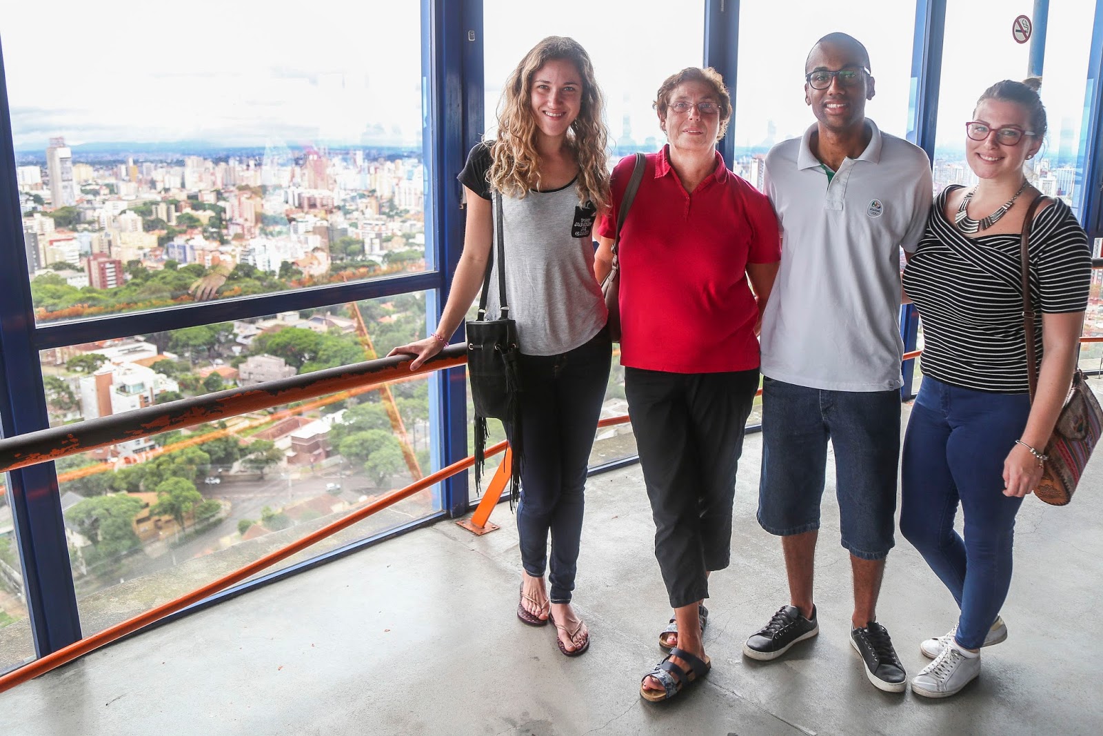| A Linha Turismo, os ônibus double decker que percorrem os principais atrativos da cidade, teve 608.431 embarques em 2016. -Na imagem, Leonie Kenner, estudante (ALE) Locas Perez dos Santos, estudante Jana Babilon, estudante (ALE) Barbara Babilon, enfermeira (ALE). Curitiba, 17/01/2017. Foto: Pedro Ribas/SMCS |